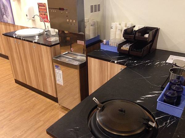 除此之外旁邊也設有像摩斯漢堡的洗手台還有旁邊附有餐具跟玄米茶還有免費的味增湯。
