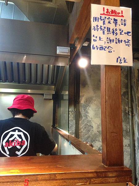 店內規定用餐完要把餐具放到上圖的較高木檯處,大家也別忘了喲~