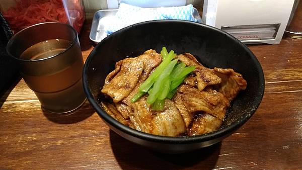 店內採用自動販賣機點餐口味只有兩種烤五花丼飯、薑汁豬肉丼飯去做大小的變化(Mini、中、大、特大、加套餐)