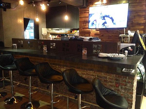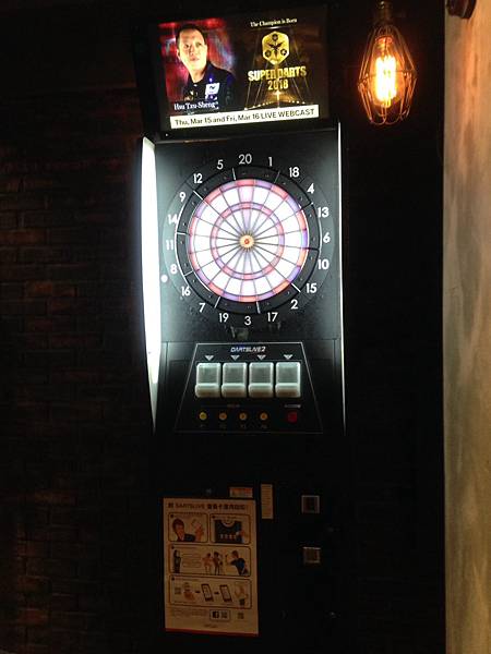 店外佈置風格走美式風格店logo採用黃黑配色相當搶眼,店裡的裝潢則採用美式與偏向較正式的西餐混合外旁邊也附有飛鏢檯適合晚上三五好友一起聊天玩小遊戲。